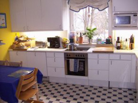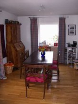 Our house has on the ground floor: entrance; bathroom with shower & toilet; open, spacious living room/dining room (with table seating 10 people) & comfortable seating area, TV/video,dvd,stereo/CD; large country-style kitchen with table and electric stove/oven plus wood-burning stove, dishwasher, microwave; 50 qm wooden deck with garden and BBQ. Upstairs: three large children's bedrooms ; bathroom with shower/bath. 2nd floor: beautiful master bedroom w.double bed, oak beams, walk-in closet & en-suite bathroom/shower. Basement w. guest bedroom (double bed), TV with Sky, wash.room w.washer/dryer and a sauna.