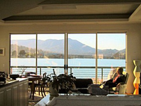 Showplace 160m2 home floating on the bay just over the Golden Gate Bridge from San Francisco (15 minute drive). Hardwood floors, recessed ceilings, and other unique architectural touches upstairs. Two carpeted bedrooms with en-suite bathrooms and closets downstairs; hide-a-bed in living room. Sleeps up to 6.