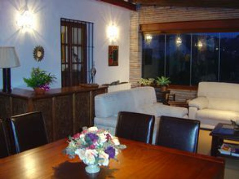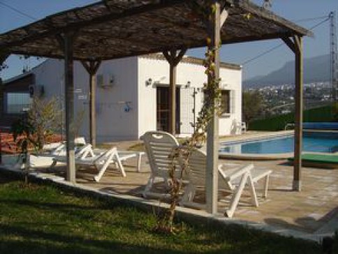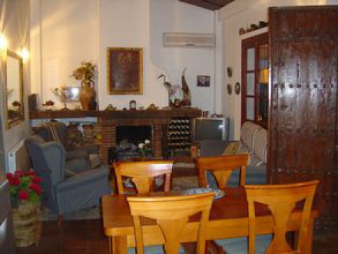 Our house is built against the mountains and has beautiful views over the valley, the white village and mountains behind. The house has a large open plan area for dining, sitting and cooking, with fireplace, colour satellite TV (English/Spanish channels, video/dvd player. The large terrace has glass curtains which are opened in summer. Here is a square dining table with 8 leather chairs and 2 sofas (one is a sofabed) and a large bar. There are 2 double bedrooms , one bathroom, a computer with email, printer, scanner and a piano.