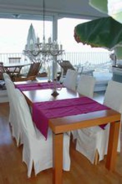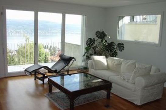 Our house was build in 2003 with 200qm,6 rooms each with spectacular panorama view on the Zürich lake/mountains/forest and some on the city of Zürich. All modern appliances (e.g. dish-washer,ceran cooking field,Internet-access, DVD, TV with international channels,beds: 1 King size,1 Queen size,bed sofa, 1 toddler's, 3 showers, 1 tube). The dining room and the modern open kitchen lead through big sliding doors to a hugh deck with view to forest, mountains and lake. The perfect spot for an open air meal in all privacy. The large living room has an open fire and an additional balcony. Nice garden+2 patios. Parquet flooring and under floor heating, private car parking in front of the door.