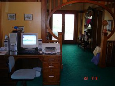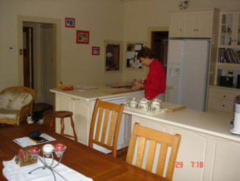 Our 4br house has extensive gardens; a huge partly covered outside entertaining patio; large modern kitchen opening onto outside patio, central hallway, interior room off which 2 main brs;dining room, sitting room; bathroom; and kitchen lead. Laundry, study and two remaining brs are off the main kitchen. There is a large front garden with alovely paved sitting area. car port at front for parking. Verandah off sitting room with stairs to side garden. Daikinreverse cycle heating system for winter/summer. IXL Thermostat wall heater in kitchen.