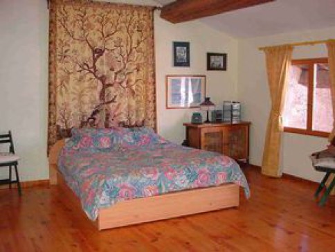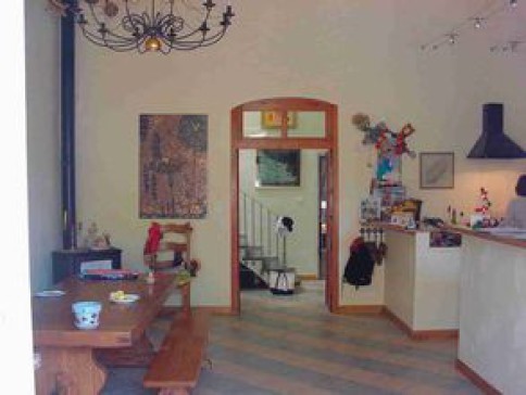 Our 19th century thick stone-walled and modernised village house lies in a friendly and tranquil neighbourhood. An open plan kitchen/dining room (50 m2) with giant-sized social table leads through the hallway to a lounge (32 m2) offering comfortable sofas and access to sheltered/shaded courtyard (25 m2). When guests come they mostly sleep in our lounge on a large sofabed and use the downstairs showeroom. Two further bedrooms (45 and 32 m2) on the 1st floor have a bathroom in between. Our loft was converted to a balconied mezzanine for a 3rd bedroom (20 m2).