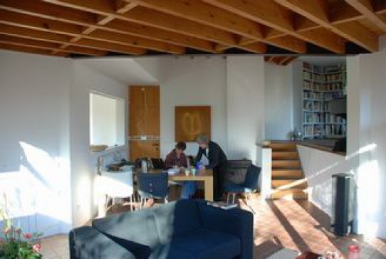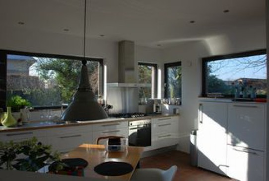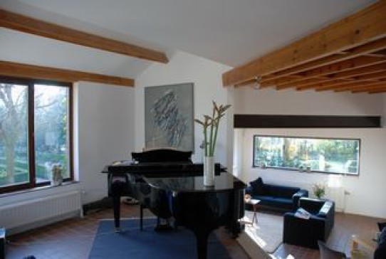 A large (320 m2) split level country house constructed by architect (1980); surrounded by gardens, an orchard/meadow with sheep and woodland scenery (total 0.6 ha/6000m2). Chill out area with open fire.