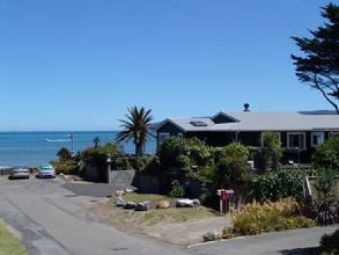 Brand new beachfront house on large 1/4 acre landscaped section down private street. Expansive decks with 180 degree views of sea & islands. Heatpump/air conditioning, open fire. Spa on deck overlooking sea. Cable tv, internet. Walk over front lawn onto beach. Walk to village centre, 45 minutes to Wellington CBD, 3 hours to skifields.