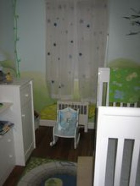 We have a pack-and-play or even a crib to accomodate a baby if needed. The master bedroom has a King and the other has a Queen sized bed.Our son's room has a twin mattress on the floor so that should he roll out of bed he doesn't fall to the floor. We have a small front yard to play and a back outdoor sitting area. there are many nearby playgrounds. Very comfortable, relaxed neighborhood.