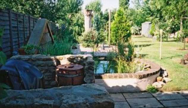 The south facing garden area has a lawn with flower boarders and a patio and barbeque area.