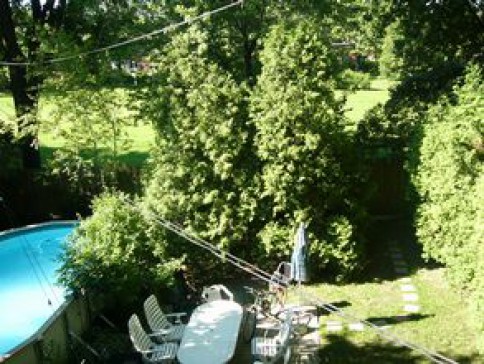Our house is located in a quiet residential neighbourhood from which we have easy access to subway (5 min. walk) and to highway. Our backyard is surrounded with matures maple trees, contains a private pool, and opens on a city park with kid's area playground, paddling pool (in summer) and a skating rink (in winter).