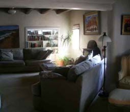 Our home is an old adobe, 20 minutes north of Santa Fe, New Mexico. It is very comfortable, and has a great feeling, but has not been modernised recently! Stunning landscape, mountains, museums, opera (summer), skiing and 300 plus art galleries and many artists. The house has a large studio space. Nice garden with views of the Jemez Mountains. Within a day's drive of national parks in neighbouring, Arizona, Utah, Colorado and Texas. The famous Spanish Market in July and Indian Market in August. Plus the Fiesta in September. Absolutely Incredible weather!