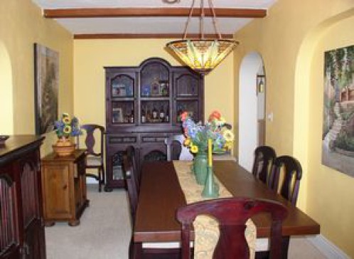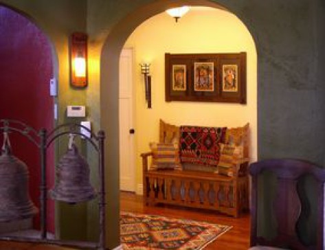 We have a beautiful San Diego home in the Historic Neighborhood of Point Loma, minutes from beaches and Downtown. Our home was built in 1929 (Old for San Diego). It is in the Spanish Revival Style which consists of many features which makes this a very warm and inviting house with lots of character. Downstairs has 2 bdrms, 2 bths, kitchen, dining/living rms with fireplace. Upstairs is a large den (with sofa bed)/office/children's area with large deck and a beautiful view of Downtown San Diego. Our home has arches, courtyard, hardwood floors, beamed ceilings, stained glass, fountain.