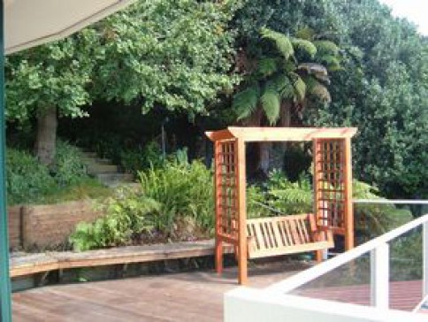House surrounded by native bush and reed pond. Large tiled covered terrace with bar and jacuzzi. 4 bedrooms, family room, games room, master suite with separate lounge and sun terrace. 10 minutes walk to local shops or drive 5 mins to city centre. We are close to beaches(swim & surf), 1/2hr drive to mountain for guided climb or easy walks along marked tracks.