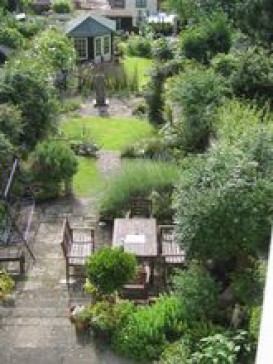 Our pretty garden is designed on 4 levels with a summerhouse and 2 separate eating areas.
