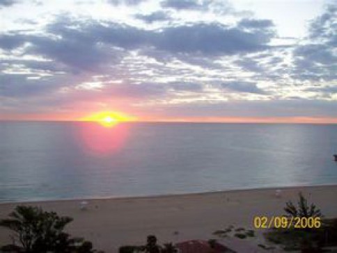 My condominum apartment is 1600 square feet, one master bedroom suite and also a combination guest room/den. There are two full bathrooms. Every room faces the Atlantic Ocean across the street from the building. Panoramic views of the ocean and fishing pier from 18th floor. Large furnished balcony also facing ocean. Gorgeous pool area, fully equiped gym including sauna. There is also a billiard room and library. Full, round-the-clock manned security and parking. Two 18 hole championship golf courses a few blocks away and a tennis center, both open to the public.Fort Lauderdale is four miles south, Palm Beach 45 miles north and Miami Beach 45 miles south.