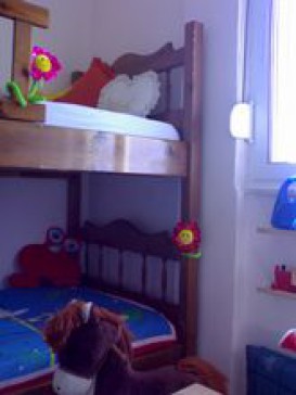 A spasious main bedroom with PC office, a children room with bunk, living room adgoined with kitchen.