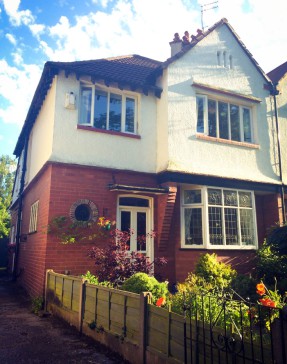 Three-bed semi-detached home on a private estate in Chorlton, a suburb of south Manchester. Built in the Arts & Craft style, with stained glass, high ceilings and an open plan kitchen extension, the house is adjacent to open woodland, but just four miles from Manchester city centre.
