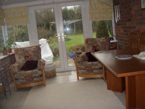 Home: 1 bathroom with bath and separate shower. 2 toilets. Kitchen with table/4 chairs. Large gas cooker, dishwasher. Gas central heating, fridge/freezer. Large conservatory with gas fire on to large garden. Lounge has coal/log fire although we are looking to put in a gas fire.