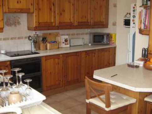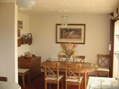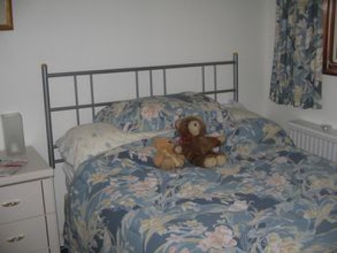 We live in a 1970's house in a rank of 6 houses. We have three bedrooms with television,(2 double and 1 single) and a family bathroom upstairs. Downstairs is a lounge with flatscreen television and computer, a large kitchen/diningroom, conservatory and downstairs cloakroom. There is a garden to the rear of the property with a patio area and a lawn area to the front. There is a single garage and off street parking for a further car.