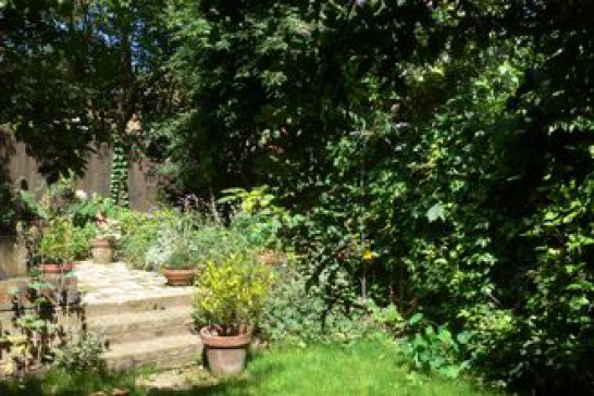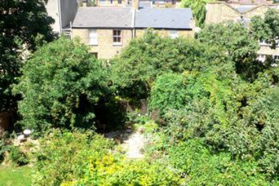 The flat has two bedrooms, one a child's, and a large library/ study. Downstairs is the living room, bathroom and kitchen-dining room which overlooks the private, secluded garden. A very comfortable, easy to live in flat.