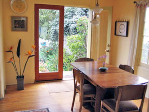 I`ve got a lovely Spanish/art deco two-story house with high ceilings, fireplace, piano, and lots of California sunshine. Two double bedrooms, 1 1/2 bathrooms, and an office. Native plant garden in front. Fruit trees, veggies, avocados, and berries in the back garden.
