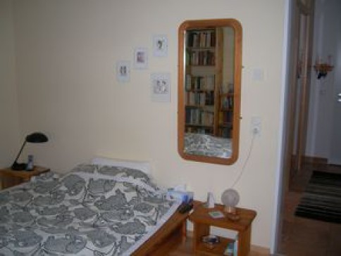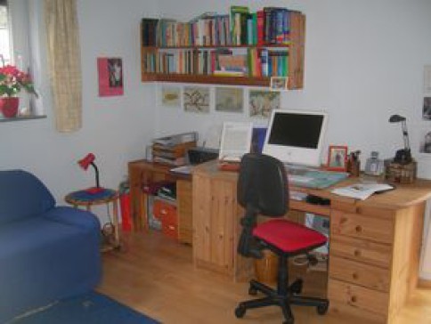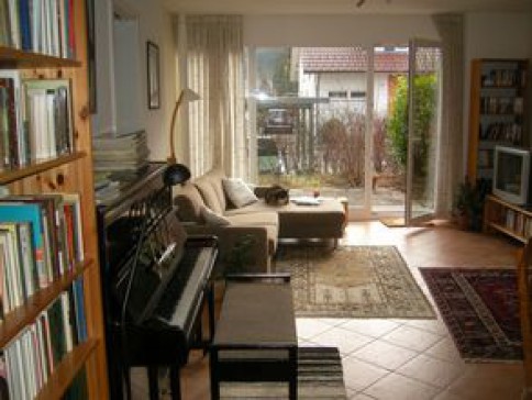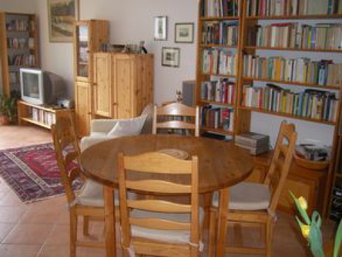 Big living/dining room with doors to patio and tiny garden, fitted kitchen with dishwasher, electric cooker, ceramic hob, bedroom with double bed, study with sofa bed, bathroom with shower cubicle, bath, WC, separate guest WC. Lots of books, DVDs and CDs, and a piano available.