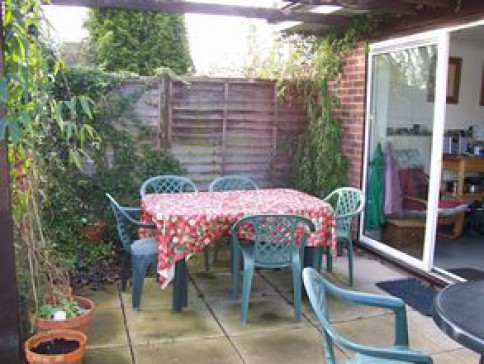 Master bedroom with double bed; smaller room with double futon; shower room (no bath); open-plan lounge and study area with TV, hi-fi, DVD, VCR, two sofas, books, CD/DVDs; large dining kitchen with dishwasher, fridge-freezer, microwave etc; large patio doors to private, sheltered, south-facing back garden. Large patio with seats and tables, large barbecue.