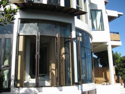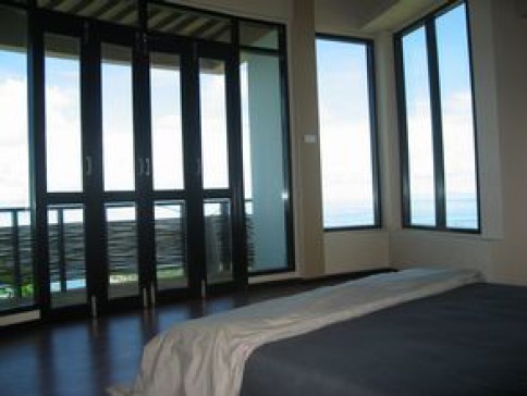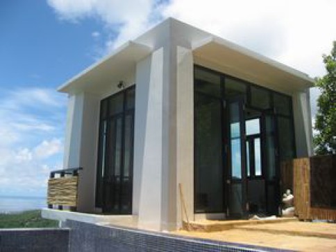 A purpose built modern villa situated cliff-top with 'the best view in the Gulf of Thailand', offering +180 degree view from its 200m high eagle's nest location. 2 bedrooms, 2 bathr'ms (1 ensuite), kitchen, mezzanine reading area, lounge, entrance hall, 2 sun decks, 2 basement storage areas and TV sala (3rd bedroom). Main building is a circular design, external walls mostly comprised of glass to max'ise the panoramic impact. With a pool and seperate hot water cliff-top bath, this is a big villa. Inc'50" flat-screen with home theatre system, satTV and PS2. Mas'bed'inc 32" flat-screen and large private balcony. All this on the idyllic tropical island of Koh Tao and its crystal waters! NB dangerous for small children, sheer s!