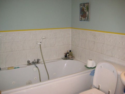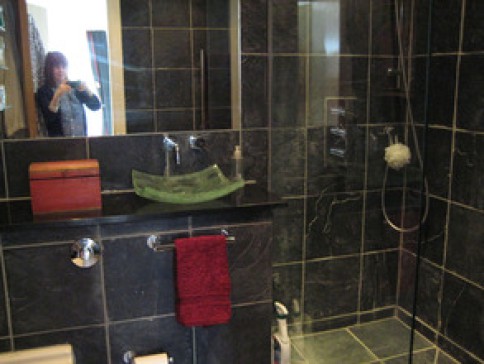 The modern flat has an open plan living area, the double bedroom has an ensuite shower and there is a second bathroom. The large sofa makes a comfortable bed for a third person.
