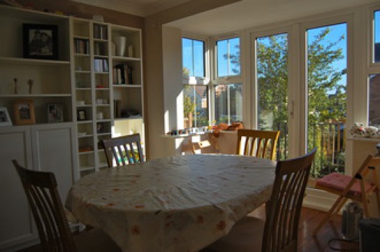 Main bedroom has ensuite; another double bedroom and 2 smaller bedrooms (one is our son's). Lounge and Dining Room. Reasonable-sized kitchen with small utility. Our garden is "tiered" with a decking area with garden table & chairs.