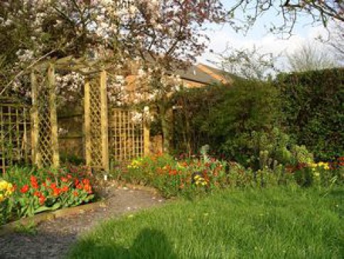 Large mature garden with lawn, patio and furniture. Climbing frame, slide, play house and garden toys.