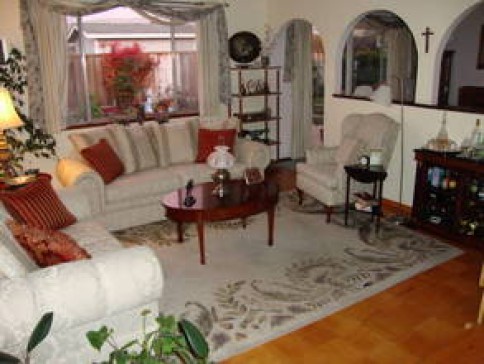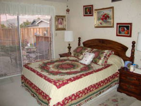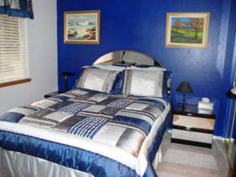 Our home is 1800 sq. ft; 2 bedrooms have queen beds and the other a twin trundle bed(another twin underneath); two full bathrooms with tub/showers; nice size kitchen open to the dining room and family room. We also have a separate living room and a den with computers and printer. We have a small but very pleasant back yard with a patio and deck.