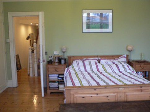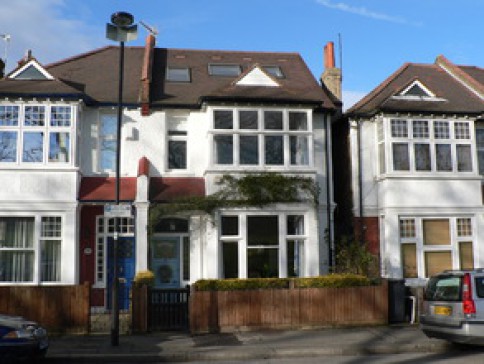 The ground floor of the house has a large kitchen / dining room overlooking the park and a large living room looking onto the garden. Upstairs are three double bedrooms and two bathrooms and at the top a spacious attic room with wonderful views over London.