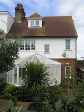 1905 built extended cottage with direct access on a golf course, just 200 yards from beach, having fabulous sea and rural views. Two world class golf courses, bird observatory and charming seaside town of Deal in easy walking distance.Well decorated and furnished with antiques, modern bathrooms and big kitchen with all appliances. Its well insulated and cosy with log stove in winter: bright conservatory and outside dining area for summer living. Close to historic Sandwich and Canterbury and the castles and gardens in Kent. Fast trains to London and ferries to France from Dover for days out. Golfing at famous links courses can be organised. Deal is a lovely little seaside town, not commercialised, but with all types of shops, railway station, museum. Resident gentle white cat would need daily feeding and stroking. Small automatic car for swopping and two bicycles available.