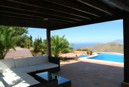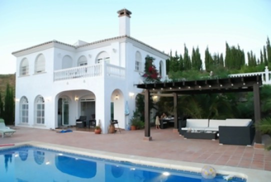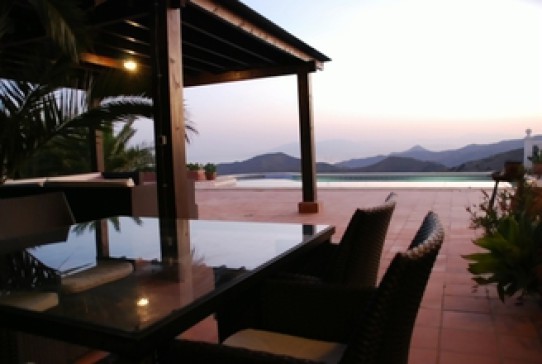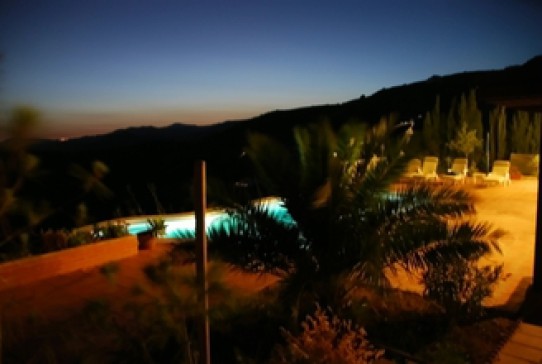 The Villa has 2 floors. At the first floor you find the living room, the dining room and the kitchen. The second floor has 2 sleeping rooms with 2 luxurious bathrooms en suite and as well the entrance to the house. The Villa is a good starting point for walks in the nature. It is equipped with central heating for the winter season. The pool has an extraordinary shape. The Location is in Moclinejo (700 meters down the hill)with fantastic view towards Malaga and the Mediterranean. 25 minutes away form the centre of Malaga, 12 minutes to the Mediterranean, 8 minutes to the golf course. and 25 minutes to the airport. Especially the view at night towards Malaga is described in many tourist guides.