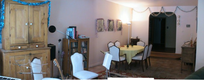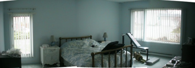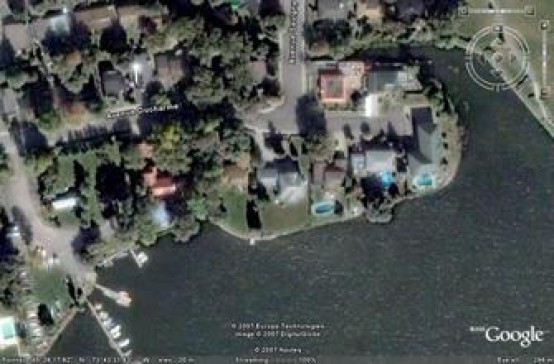 Located in a quiet suburb close to the shores of Lac St Louis in a neighbourhood of beautiful old trees that give it a village feel (the pink square roofed house in the satellite photo).