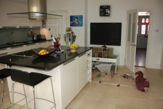 We have fully refurbished the house in the past 3 1/2 years (excluding the old loft extension which is currently used as storage). The house is fully adapted to life with (young) children with toys and all the usual equipment. Downstairs we have a large, extended, state-of-the-art kitchen/diner, utility room, WC, comfortable sitting room with TV projector and well-tended garden of approx 6 by 15 metres, with table and chairs, Weber bbq, sandpit. Upstairs we have 3 bedrooms - one double with superking size bed, another double used as the children's bedroom and a third single room which we use as a study. We have a small bathroom with combined shower/bath. We may be able to include the use of our VW Golf car.