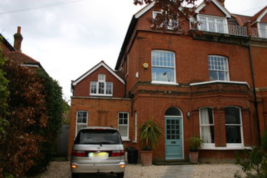 The house is bright and airy with pretty rear garden and front driveway.There are 2 double bedrooms (1 en suite) and 3 singles which are large enough to accommodate more than 1 person. 2 other bath/shower rooms and downstairs loo. Large modern kitchen, dining sitting room and sep TV room. Very useful warm laundry in the cellar.