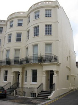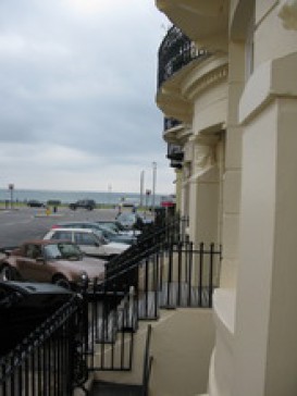 Large mansion flat on Hove seafront in a grade 2 listed Regency building. There's a view of the sea and beach from the living room and master bedroom. The second bedroom is a study with a very comfortable sprung double sofa bed, and the third bedroom has a single bed in it. There is a newly fitted modern kitchen with a range cooker and the whole flat has loads of period features.