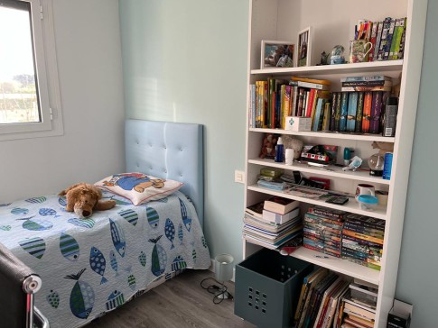 The flat is a new build (2021) of about 80m2. It's on the first floor but as if it were a second floor in terms of distance from the ground floor. Three bedrooms, two with double beds, one with an en suite bathroom. There's also a chaise longue which is very comfortable to sleep on and a balcony as well.