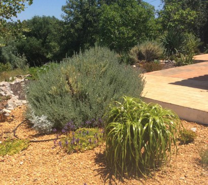 The villa is on a hill surrounded by carob and olive trees and we grow our own vegetables. The garden is irrigated, but pot plants would need weekly watering.