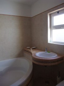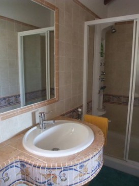 The villa has a modern kitchen and three bathrooms (one is a wet room). Although the villa is four bedroomed we are making two bedrooms with double beds available. The other rooms are an art room and an office. These rooms will be closed.