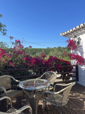 We have a deck off the master bedroom that provides wonderful views. We have a private swimming pool with a bubble seating area. We have a hot tub with a full sized bubble bed. We are almost 100% solar and have an electric car. We have two cars. We offer the non-electric car.  We are set in 1.5 acres of land with an electric gate and fencing. Its a quiet area perfect for painting, writing and relaxing, but also close enough to Tavira and the beaches for night life and fun.