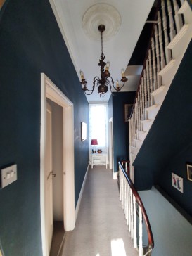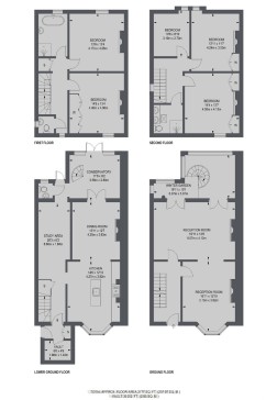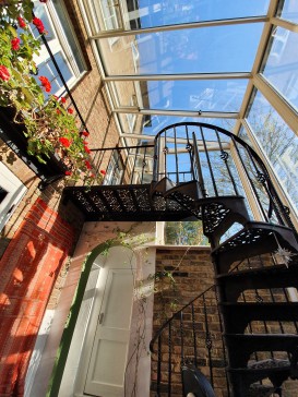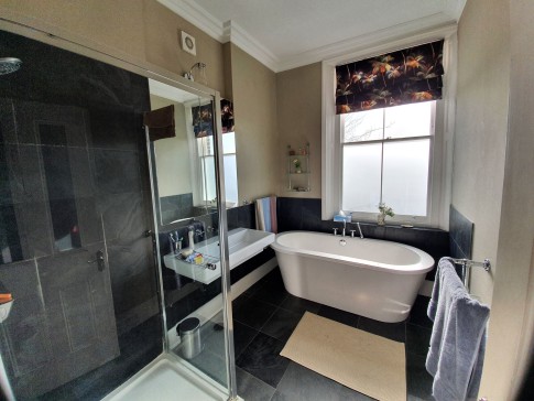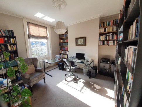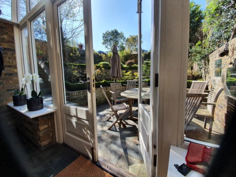 Very generous Victorian end of terrace family house from 1871, thoroughly renovated and redecorated, with 240 square metres. The top two floors have five bedrooms (one of them used as a study). The second floor has a bedroom with double bed, two bedrooms with single adult beds, and a shower room. The first floor, with high ceilings and period detail, has two bedrooms, one of which is currently used as a study and has an armchair. The master bedroom has a super king sized bed, and on this floor is a beautiful bathroom and separate shower; the toilet is separate. The grand upper-ground floor has two large reception rooms, one of them currently used as a study but with a small settee; the other has two sofas, one of them a sofa bed, and a tv connected to internet, with Netflix. On the lower ground floor are open plan, with a large kitchen with dishwasher and a dining room with very large table seating 10-12 and gas fire, leading out to a two-storey conservatory with a sofa-bed and going out to the stunning southwest-facing garden, part of it terraced; here 6 people can comfortably be seated for meals. There is also a separate toilet off the conservatory (so 3 toilets in the house). At this level is a small laundry room and separate entrance.