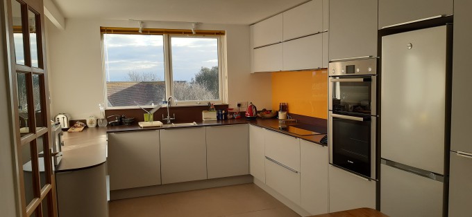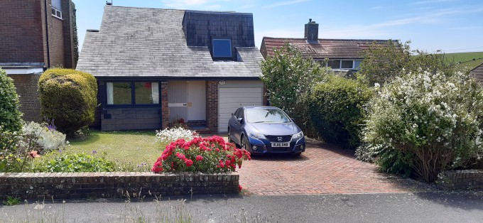 An individually designed house with panoramic views of the sea and surrounding South Downs National Park in a quiet road within the village of Ovingdean, close to Brighton (4 miles).