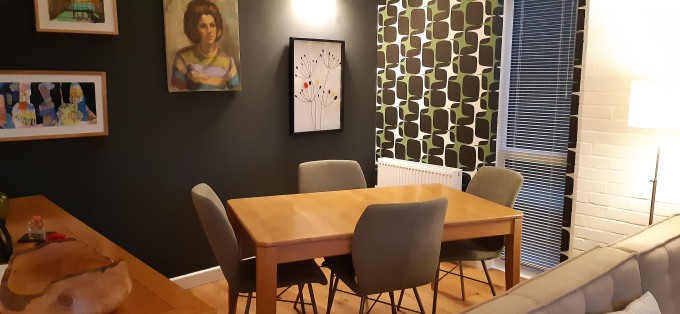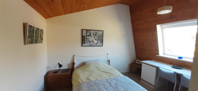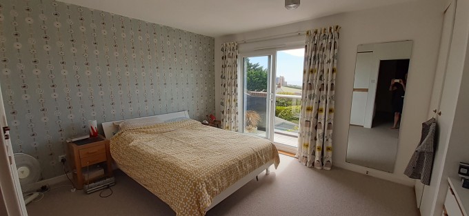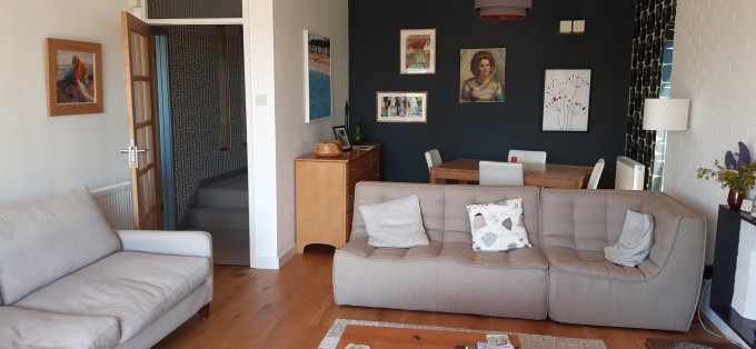 The house is spacious (157 sq m) with a lounge with dining area, a second reception room, kitchen with breakfast bar, downstairs toilet and separate cloakroom. There are 3 bedrooms on the 1st floor, two double bedrooms and a third used as an art studio. The main bedroom has an en-suite shower room and patio doors leading to a balcony. There is also a family bathroom. The lounge opens up onto a terrace with sea views and a south facing garden. There is parking on the drive and in the street, Wifi available.