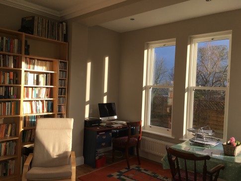 There is another double bedroom on that floor which is currently used as a studio but could be used as a single bedroom. The house is very light and warm. The windows at the front are triple aspect and catch the sun all day.