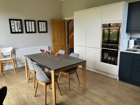 Our house is at the end of a modern terrace of four houses built with direct access from the front and the back onto the Old College Lawns.We are at the end of the cul de sac and so there is no passing traffic. We live in Ripon, close to the Market Square and the Cathedral. There is a private sunny garden with a patio and garden furniture. Bikes can be stored securely in the utility room. There is private parking for 2 cars and extra dedicated visitor parking available free within 200 yards. The ground floor of the house is newly extended to provide a large kitchen/ diner with bi fold doors leading into the sunny garden. On this floor too there is a spacious sitting room which can also be used as a dining room. There is also a utility room and a cloakroom. The utility room can be used as safe storage for bikes. On the first floor there is a sitting room with triple aspect windows overlooking the Old College Lawns and the master bedroom with an en-suite shower room and French doors leading onto a balcony which gets morning and late afternoon sun. The balcony has a table and chairs and views across to the escarpment edge of the North Yorkshire Moors.