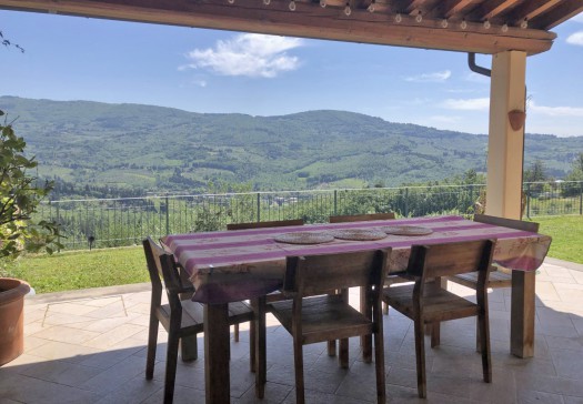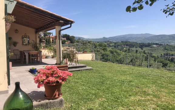 Semi-detached house situated on the hills surrounding Florence with breath-taking views. Five bedrooms, four bathrooms, kitchen, lounge, dining room, two terraces, parking, large garden with olive trees and veranda for outdoor eating. All sleeping and main living areas are air-conditioned. Sleeps 8 adults, plus a set of bunk beds, and a single futon.