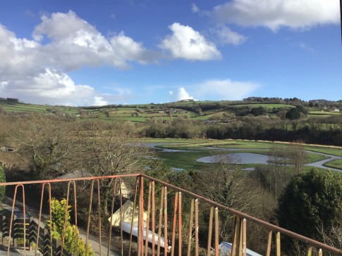 Calstock is the most charming village in the Tamar Valley. This modern house (with large balconies) is about 400 yards from the centre of the village in a large garden overlooking the river, the Devon Bank and a recently constructed wetland area (2020)! Room for up to 4 cars.