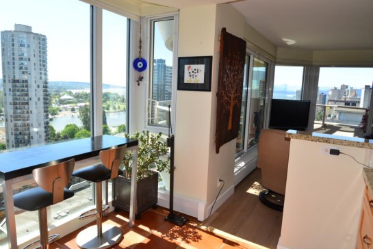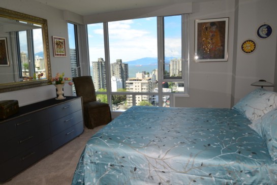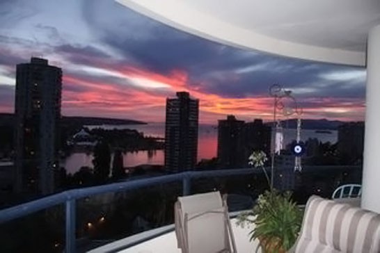 View the sunsets, English Bay and the North Shore mountains from our southwest facing 15th floor condo in the West End of downtown Vancouver. Our 1020 sq ft centrally located home has one bedroom with a queen sized bed, an office with wifi and two full sized bathrooms. It is ideal for two people. The building has a 60 ft outdoor pool, is two blocks from the water and is within walking distance of Stanley Park, Granville Island, the shopping district and hundreds of restaurants.