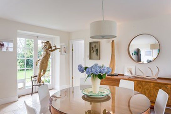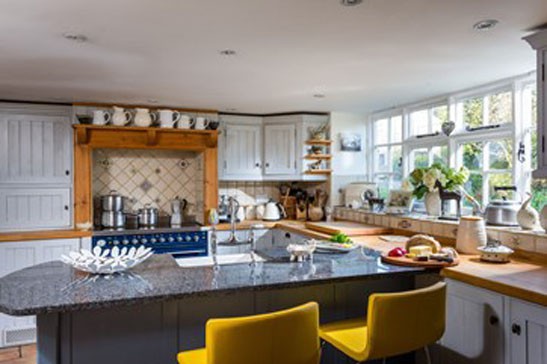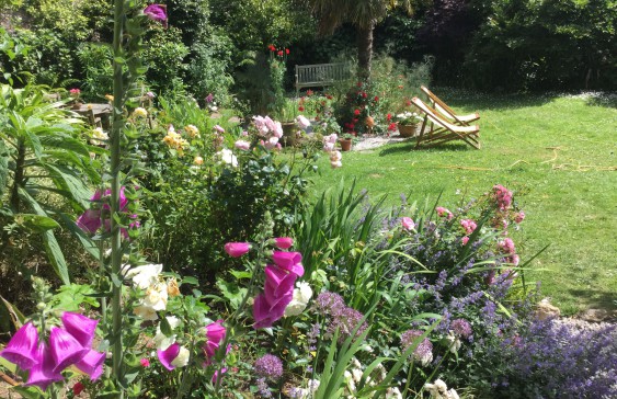 Fully renovated our home can sleep 10 but is cosy enough for two. We have four double bedrooms (two ensuite), two other shower rooms and a study with a sofa bed. The country style kitchen/breakfast room has an electric range cooker, granite and wood work surfaces, a breakfast bar, french doors to the garden and a round table that seats 8 comfortably, 10 at a squeeze. Large, separate utility room for washing machine, freezer etc. The main sitting room off the kitchen is double aspect and is lined with windows with views over the front and back gardens. There are two sets of french doors to the walled and sunny back garden, a comfortable seating area with sofas and easy chairs plus a more formal dining area with a table that seats 8. Leading off the main living room is a large and cosy TV snug which can seat ten on comfy sofas and easy chairs. This room is lined with book shelves and has a large wood burner.