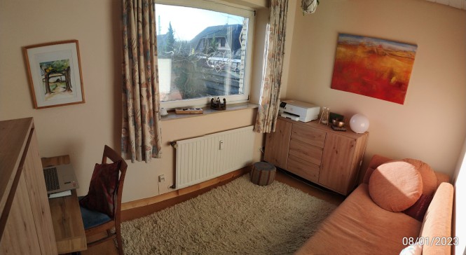 In our flat is space for 3-4 persons. There is more space in a caravan in the garden, what is a very nice in summer time to stay in.